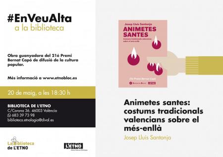 El Premi Bernat Capó arriba renovat amb un nou disseny i enfortit pel suport institucional de L’ETNO – Museu Valencià d’Etnologia que concedeix el premi. El seu autor Josep Lluis Santonja ens parlarà de com els valencians i les valencianes hem viscut i vivim la mort a través del seu llibre «Animetes santes : costums tradicionals valencians sobre el més-enllà». Acompanyaran l'autor: Joan Seguí, conservador de L'ETNO, i Núria Sendra d'Edicions El Bullent.
