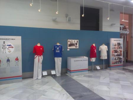 Esta exposición, pensada para ser itinerante, se ha centrado en un diseño museográfico que es muy específico y parte de un lema -Faixa roja, faixa blava- que aglutina uno de los elementos comunes en todas las modalidades del deporte, las fajas que se ciñen los jugadores en cada partida.