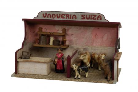 El juego es una de las formas primarias de aprendizaje, una de las maneras en que los pequeños se preparan para adentrarse en la sociedad adulta. Esta vaquería es parte de un conjunto de juguetes que representan una ciudad en miniatura, un espejo de la sociedad y los espacios a los que los niños de la familia Hevia, perteneciente a la pequeña burguesía valenciana, iban a formar parte.