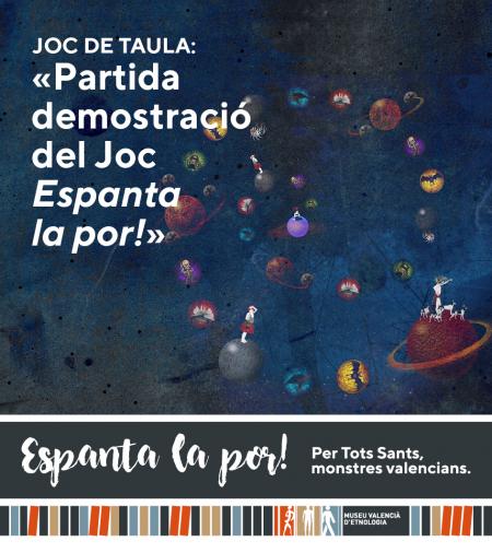 Hemos creado un juego de mesa mucho Espanta la Por! para todas las personas mayores de 8 años que sean valientes y atrevidas. En este juego los monstruos valencianos no encuentran sus madrigueras y tendremos que ayudarlos. Las fábulas serán las encargadas de daros las pistas para poder descubrir sus escondrijos, pero no podréis encontrar el buen camino sino superáis todas las pruebas.